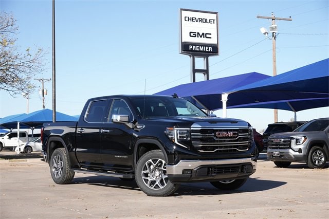 Black 2026 GMC Sierra 1500 SLT 4WD 10-Speed Automatic 3.0L I6 10-Speed Automatic, 4WD, Leather.22/26 City/Highway MPG Price includes: $1500 - Buick & GMC GM Financial APR & NCC Consumer Cash Program: $1500 discount and 6.99% APR for 36 months. $30.87 per $1000 financed. Available to well qualified buyers who finance through GM Financial. XHD, NCC. Exp. 01/02/2026