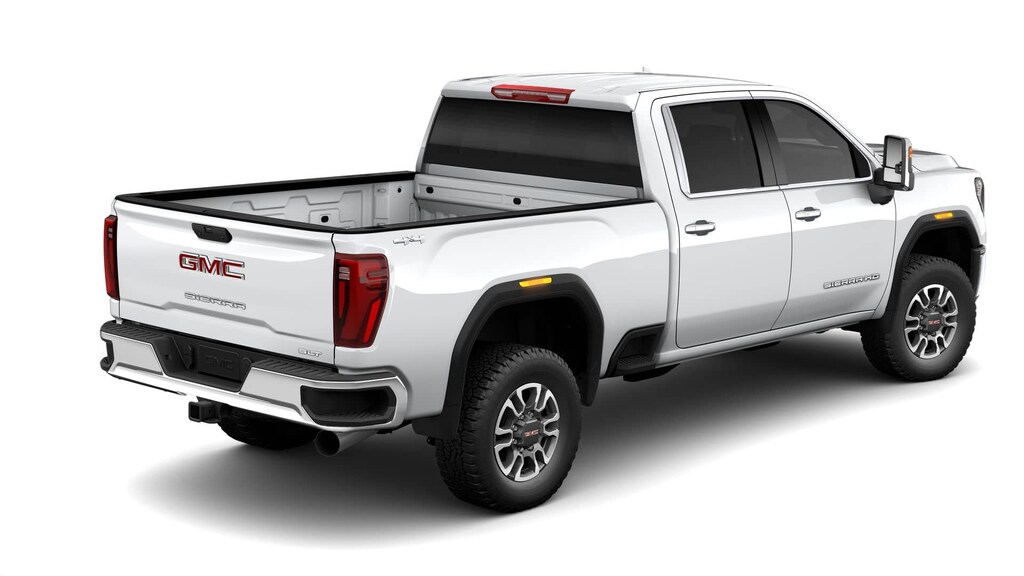 Summit White 2026 GMC Sierra 2500HD SLT 4WD 10-Speed Automatic Duramax 6.6L V8 Turbodiesel 10-Speed Automatic, 4WD, Black Leather.
