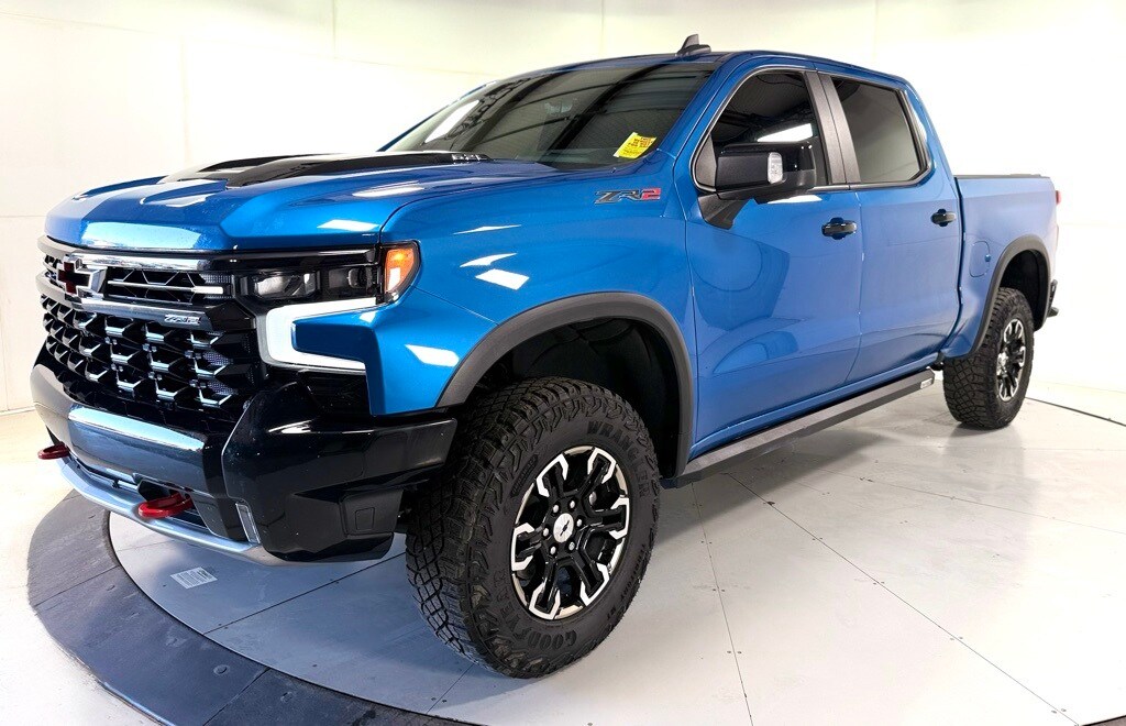 Silverado 1500 ZR2, EcoTec3 6.2L V8, 10-Speed Automatic, 4WD, Jet Black/Graystone Leather, 10-Way Power Driver Seat w/Lumbar, 10-Way Power Passenger Seat Adjuster w/Lumbar, 12.3" Multicolor Reconfigurable Digital Display, 120-Volt Instrument Panel Power Outlet, 15" Diagonal Multicolor Head-Up Display, 170 Amp Alternator, 2 USB Data Ports, 2nd Row Heated Outboard Seats, Adaptive Cruise Control, All-Weather Floor Liner (LPO), Auto-Dimming Inside Rear-View Mirror, Auto-Locking Rear Differential, Bed View Camera, Bluetooth® For Phone, Chevytec Spray-On Black Bedliner, Color-Keyed Carpeting Floor Covering, Compass, Deep-Tinted Glass, Driver Memory, Dual Exhaust, Dual Rear USB Ports (Charge Only), Electric Rear-Window Defogger, Electrical Steering Column Lock, Electronic Cruise Control, EZ Lift Power Lock & Release Tailgate, Floor Mounted Center Console, Front LED Fog Lamps, Front Rainsensing Wipers, HD Surround Vision, Heated Driver & Front Outboard Passenger Seats, Heated Steering Wheel, Heavy-Duty Air Filter, High Gloss Black Mirror Caps, Hill Descent Control, Hitch Guidance w/Hitch View, Integrated Trailer Brake Controller, Keyless Open & Start, Leather Wrapped Steering Wheel, LED Cargo Area Lighting, Manual Tilt/Telescoping Steering Column, OnStar & Chevrolet Connected Services Capable, Outside Heated Power-Adjustable Mirrors, Performance Red Recovery Hooks, Perimeter Lighting, Power Front Passenger Windows w/Express Up/Down, Power Front Windows w/Driver Express Up/Down, Power Rear Windows w/Express Down, Power Sliding Rear Window w/Rear Defogger, Power Tilt & Telescoping Steering Column, Preferred Equipment Group 3LT, Rear Camera Mirror, Rear Cross Traffic Alert-Braking, Rear Park Assist, Rear Pedestrian Detection, Rear Wheelhouse Liners, Remote Vehicle Starter System, Safety Alert Seat, SiriusXM w/360L, Standard Tailgate, Steering Wheel Audio Controls, Technology Package, Theft Deterrent System (Unauthorized Entry), Trailer Camera Provisions, Trailer Side Blind Zone Alert, Trailering App, Trailering Package, Universal Home Remote, Up-Level Rear Seat w/Storage Package, Ventilated Driver & Front Passenger Seats, Wireless Charging, Wireless Phone Projection, ZR2 Suspension Package.