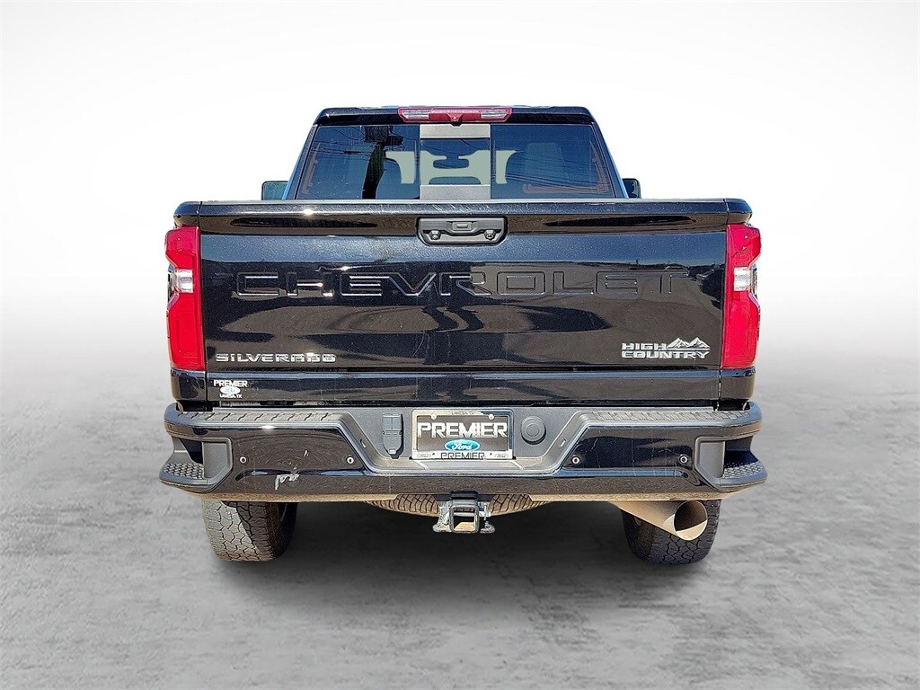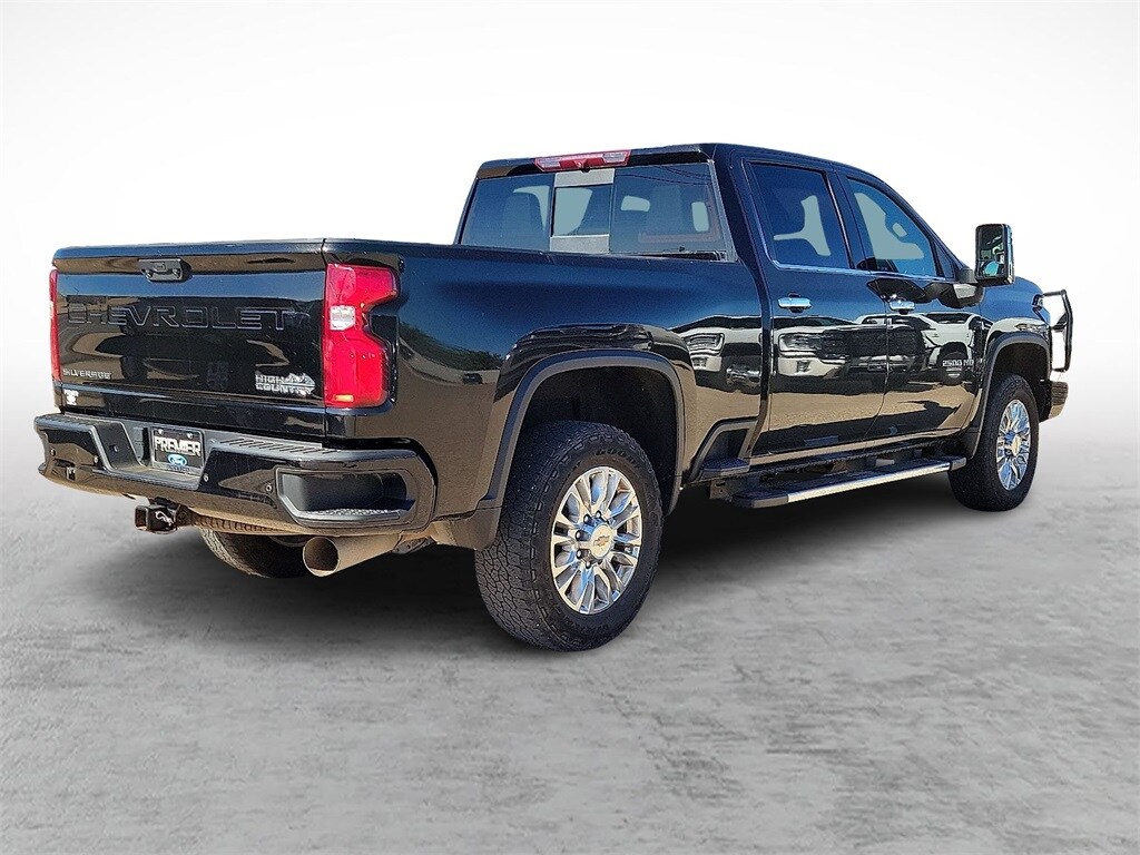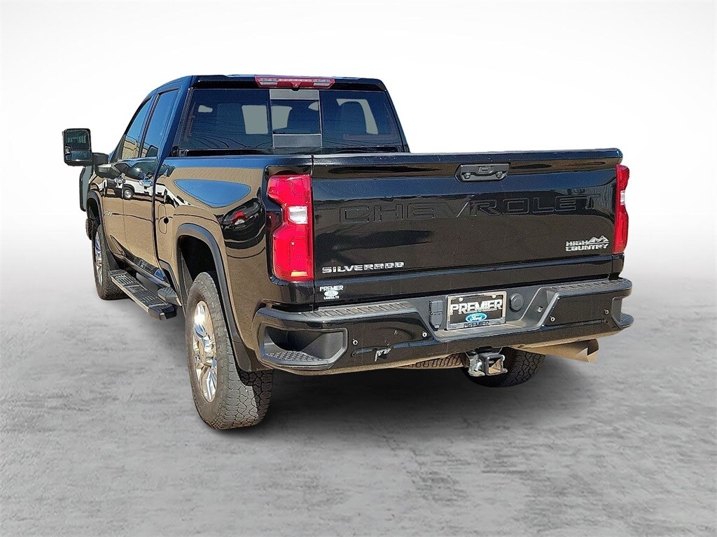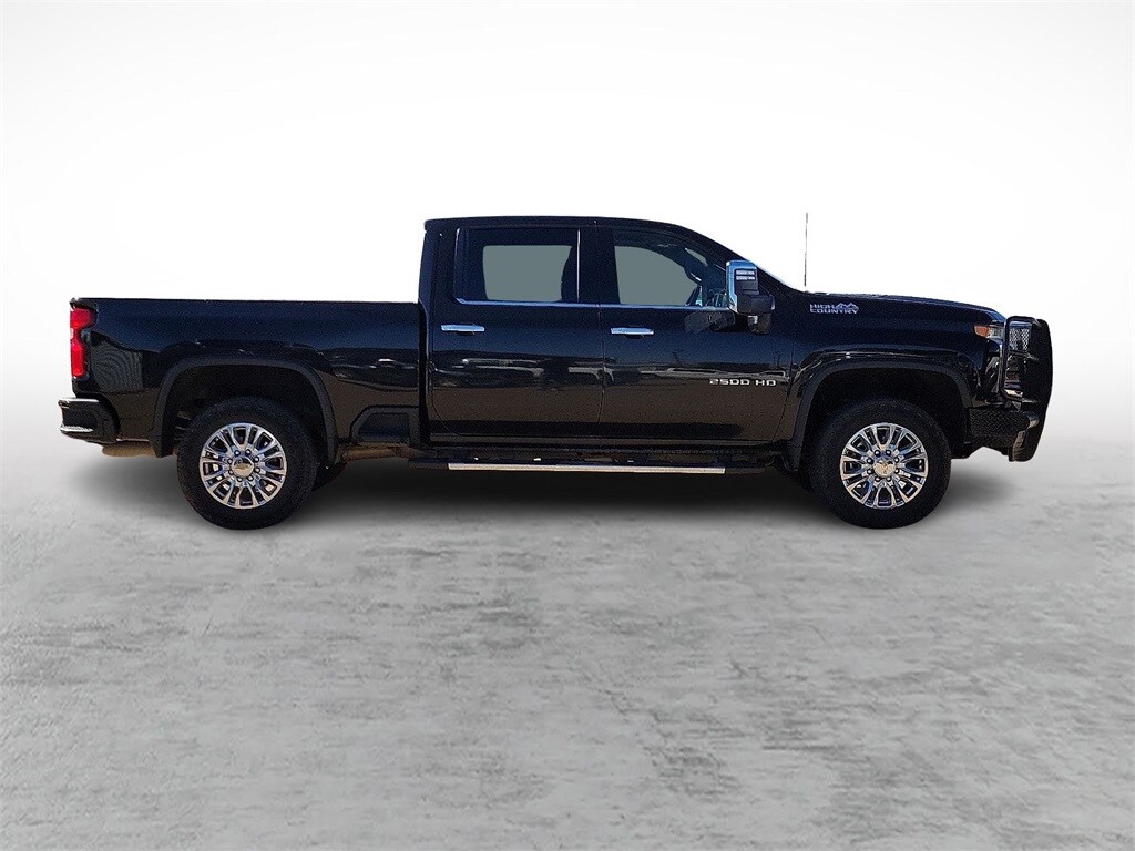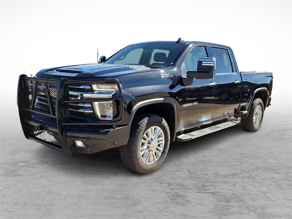 Drive our Diesel powered One Owner 2023 Chevrolet Silverado 2500 High Country Crew Cab 4X4 in Mosaic Black Metallic and don't sacrifice capability for comfort! Motivated by a TurboCharged 6.6 Liter DuraMax Diesel V8 supplying 445hp and 910lb-ft of torque to a 10 Speed Allison Automatic transmission. You can also work smarter with the standard advanced trailering system and digital variable steering assistance. Deluxe design cues include LED lighting with LED cargo-bed lights and fog lamps, 20-inch alloy wheels, chrome assist steps, stainless steel beltline moldings, a spray-on bedliner, power trailering mirrors, a 120V outlet, a sunroof, rear/side bed steps, and a power up/down tailgate.