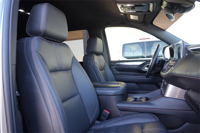 2023 Chevrolet Tahoe Sterling Gray Metallic RST Tahoe RST, EcoTec3 5.3L V8, 4WD, Jet Black/Victory Red Leather, 1st & 2nd Row Color-Keyed Carpeted Floor Mats, Auto-Dimming Inside Rear-View Mirror, Bose 9-Speaker Stereo Audio System Feature, Bright Front & Rear Door Sill Plates, Color-Keyed Carpeting Floor Covering, Driver & Front Outboard Passenger Airbags, Enhanced Driver Information Center, Floor Console w/Storage Area, Hands-Free Rear Power Programmable Liftgate, Infotainment Display, LED Daytime Running Lamps, License Plate Front Mounting Package, Memory Settings for Driver, Navigation System, Preferred Equipment Group 1SP, Remote Start, SiriusXM Radio w/360L, Universal Home Remote, Wireless Charging, Wrapped Steering Wheel. 4WD 10-Speed Automatic with Overdrive EcoTec3 5.3L V8