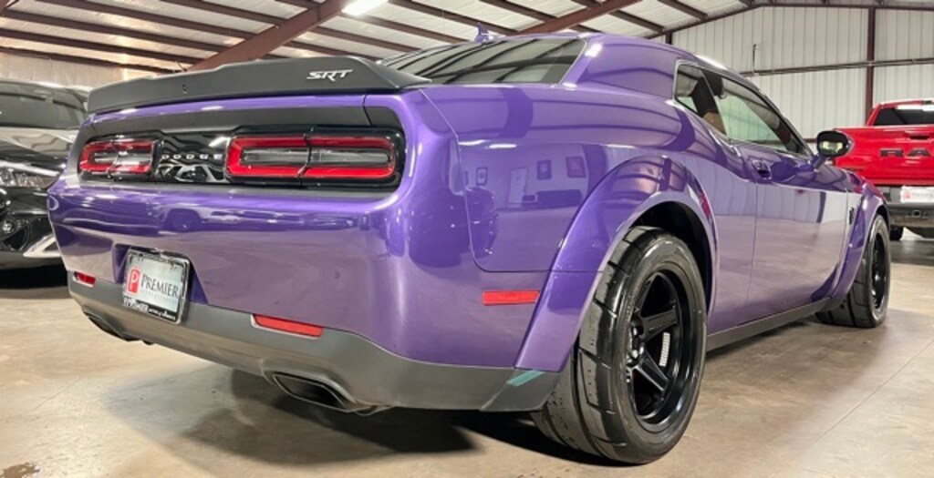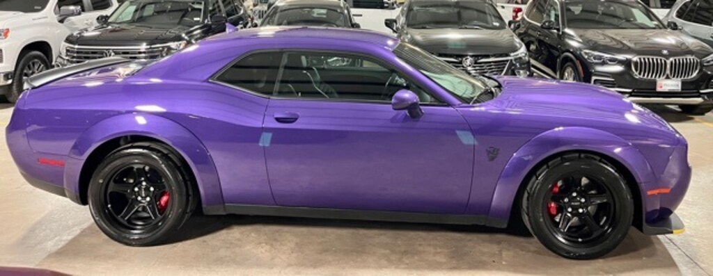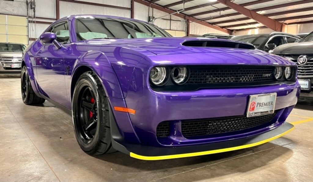 97 Point Inspection, Challenger SRT DEMON, 2D Coupe, 6.2L Supercharged HEMI V8 SRT, 8-Speed Automatic, RWD, Plum Crazy Pearlcoat, Black Artificial Leather, Bright Pedals, Center Rear 3-Point Seat Belt, Child Seat Upper Tether Anchorages, Demon Car Cover, Demon Logo Laguna/Alcantara Seat, Demon Vehicle Storage Package, Front Floor Mats, Front Passenger Seat, Front Passenger Seat Belt Alert, Heated Front Seats, Heated Steering Wheel, Leather Front Seat Group, Leather Rear Seat Option, Luxury Front & Rear Floor Mats, MOPAR Battery Manager, Power Tilt/Telescope Steering Column, Quick Order Package 26M, Rear 60/40 Folding Seat, Rear Armrest w/Cupholder Seat.