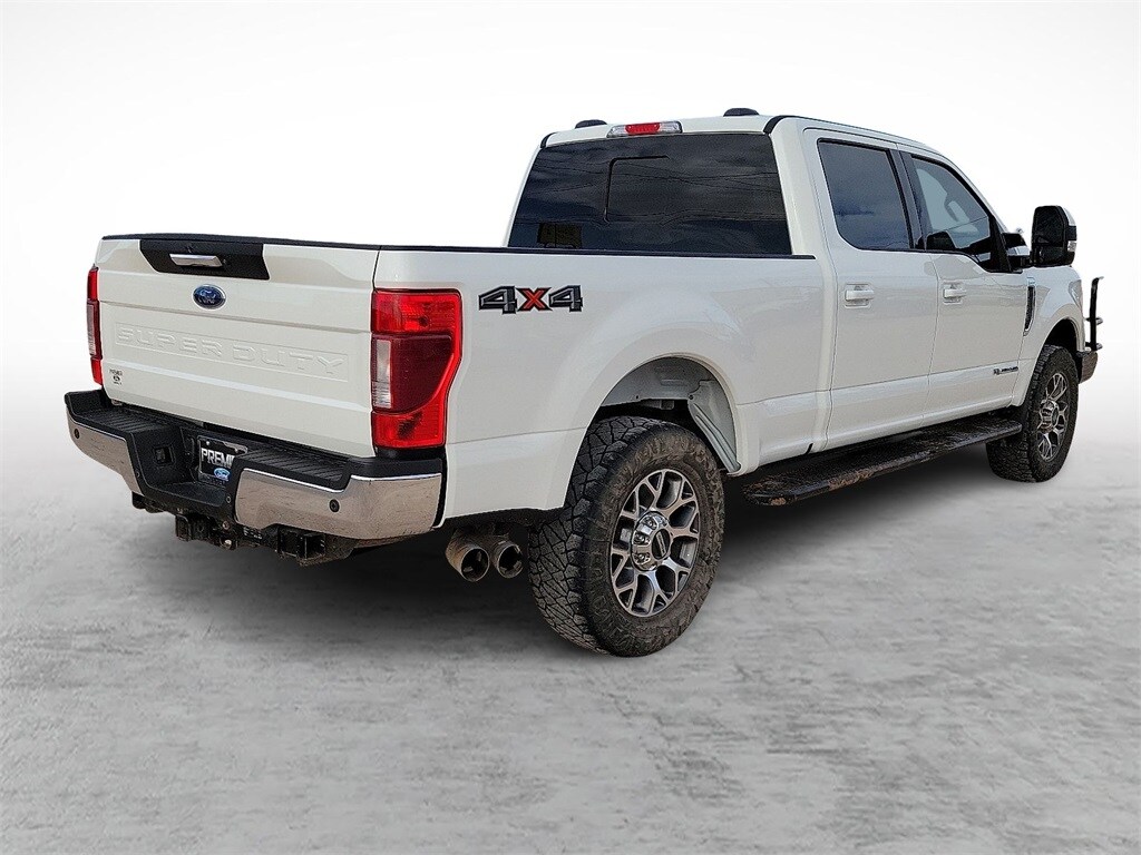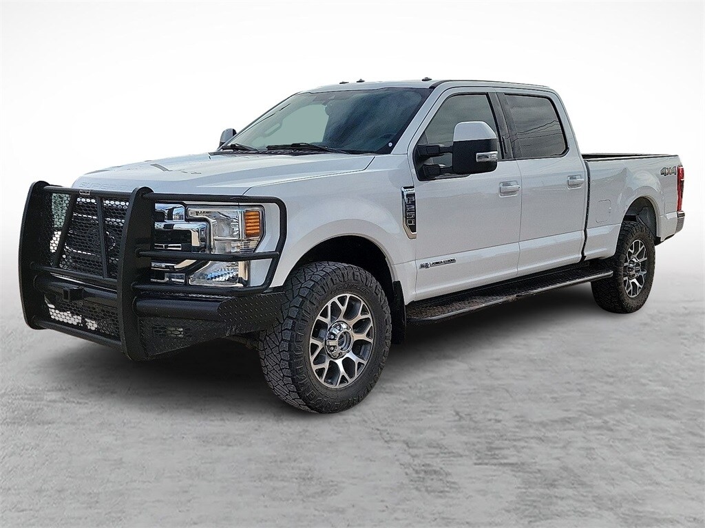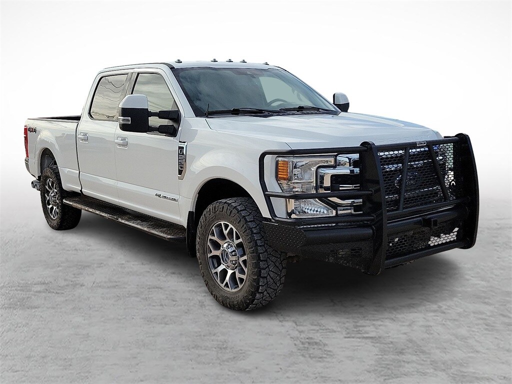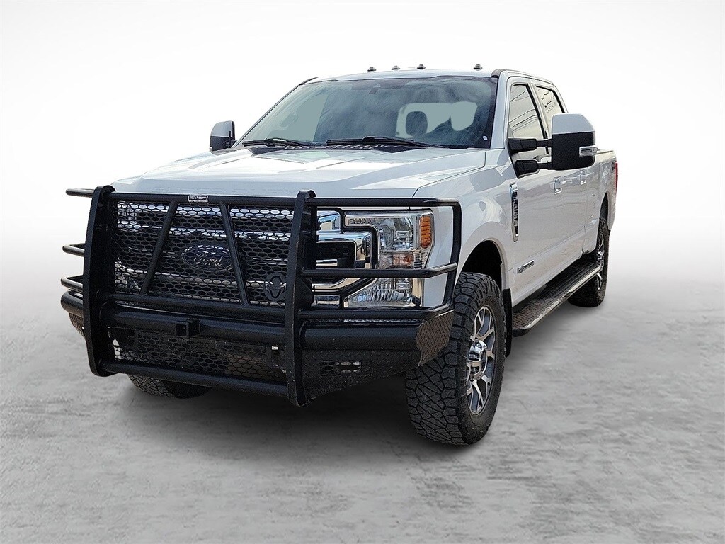 Our Diesel powered Clean Carfax 2022 Ford F-250 Lariat Crew Cab 4X4 combines refined features and remarkable strength in Star White! Motivated by a TurboCharged 6.7 Liter PowerStroke Diesel V8 offering 475hp and 1,050lb-ft of torque to a 10 Speed Automatic transmission for massive towing and hauling capability. This Four Wheel Drive truck also inspires you to take on your biggest jobs with its confident handling, and it catches your attention with classic SuperDuty good looks. A mighty chrome grille sets the tone to go with chromed-steel bumpers, fog lamps, alloy wheels, a grille guard, PowerScope trailer mirrors, and Ford's BoxLink cargo-management system.