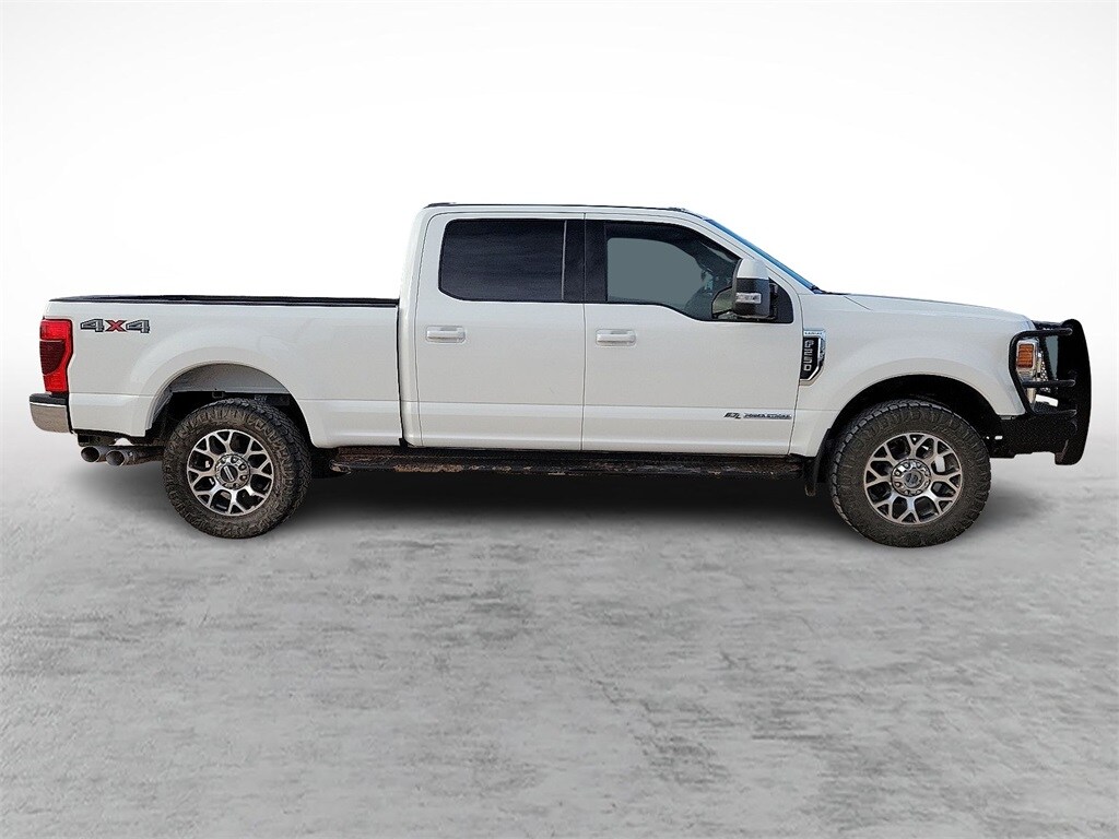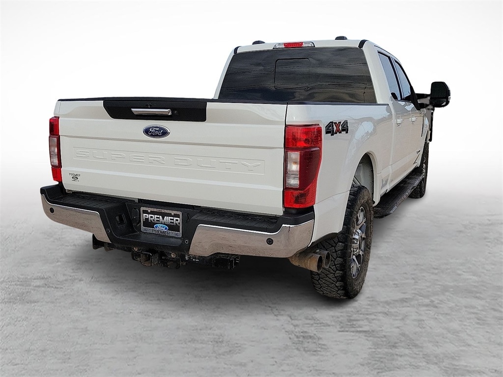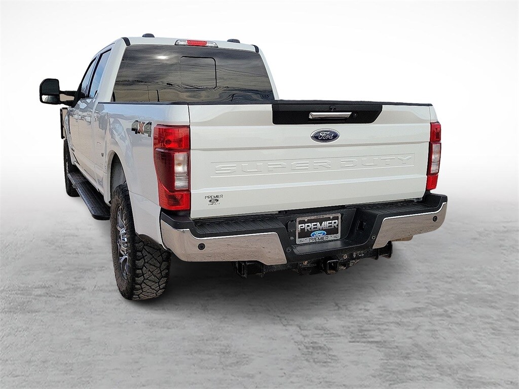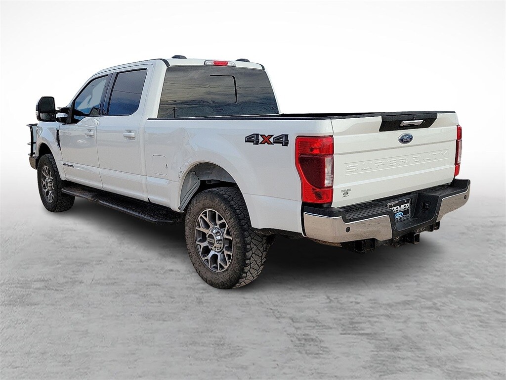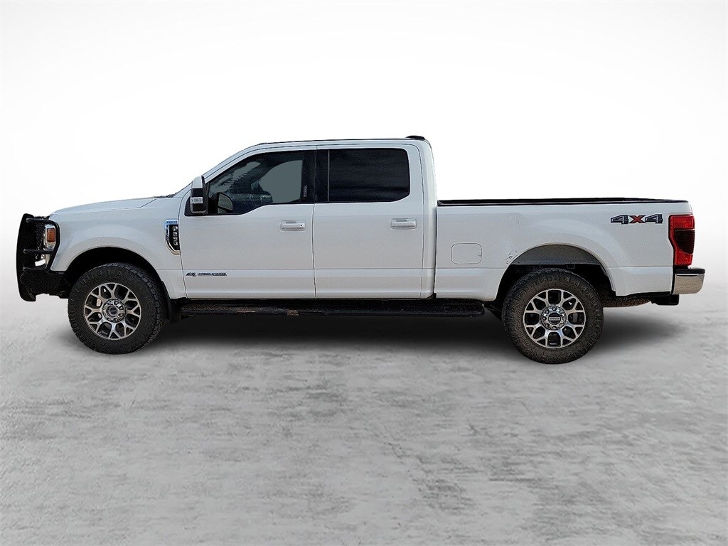 Our Diesel powered Clean Carfax 2022 Ford F-250 Lariat Crew Cab 4X4 combines refined features and remarkable strength in Star White! Motivated by a TurboCharged 6.7 Liter PowerStroke Diesel V8 offering 475hp and 1,050lb-ft of torque to a 10 Speed Automatic transmission for massive towing and hauling capability. This Four Wheel Drive truck also inspires you to take on your biggest jobs with its confident handling, and it catches your attention with classic SuperDuty good looks. A mighty chrome grille sets the tone to go with chromed-steel bumpers, fog lamps, alloy wheels, a grille guard, PowerScope trailer mirrors, and Ford's BoxLink cargo-management system.