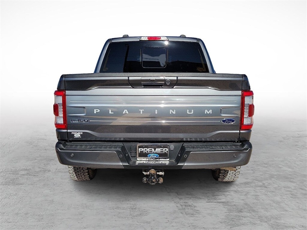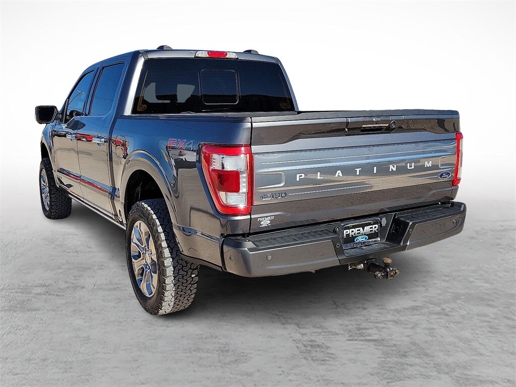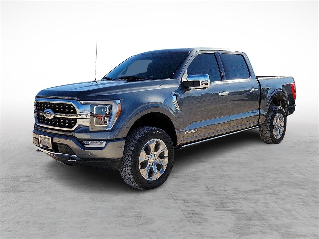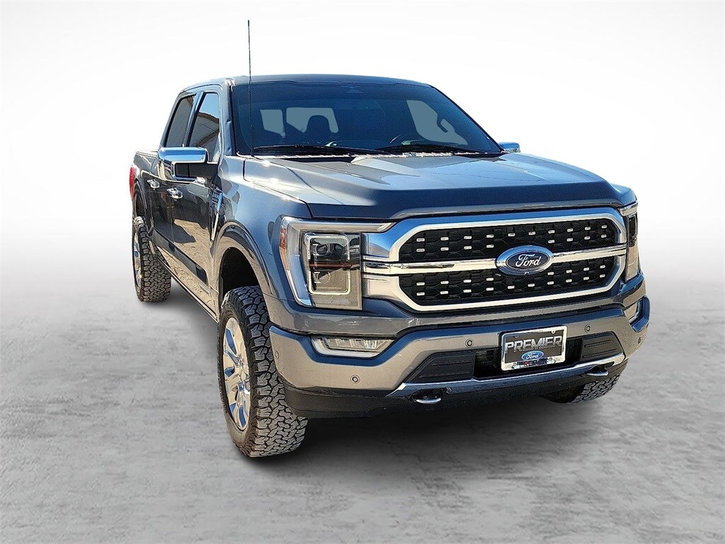 Carbonized Gray Metallic 2023 Ford F-150 Platinum 4WD 10-Speed Automatic 3.5L PowerBoost Full-Hybrid V6 3.5L PowerBoost Full-Hybrid V6, 4WD, 20" Polished Aluminum Wheels, 360 Degree Camera, 4x4 FX4 Off-Road Bodyside Decal, Active Park Assist 2.0, Active Park Assist 2.0 Removal, AM/FM radio: SiriusXM with 360L, Auto High-beam Headlights, Automatic temperature control, Bed Utility Package, BoxLink, Center High-Mounted Stop Lamp CHMSL Camera Removal, Class IV Trailer Hitch Receiver, Electronic Locking w/3.31 Axle Ratio, Emergency communication system: SYNC 4 911 Assist, Equipment Group 701A High, Exterior Parking Camera Rear, Ford BlueCruise 1.0, Front Bucket Seats, FX4 Off-Road Package, Heated front seats, Hill Descent Control, Integrated Trailer Brake Controller, LED Box Lighting, Monotube Rear Shocks, Multicontour Seats w/Active Motion Removal, Off-Road Tuned Front Shock Absorbers, Power Tailgate, Pro Power Onboard - 7.2KW, Pro Trailer Backup Assist & Pro Trailer Hitch Assist, Radio: B&O Unleashed Sound System by Bang & Olufsen, Remote keyless entry, Rock Crawl Mode, Steering wheel memory, Steering wheel mounted audio controls, SYNC 4 w/Enhanced Voice Recognition, Tailgate Step w/Tailgate Work Surface, Trailer Tow Package, Tray Style Floor Liner, Twin Panel Moonroof, Unique Multi-Contour Leather Bucket Seats, Ventilated front seats.