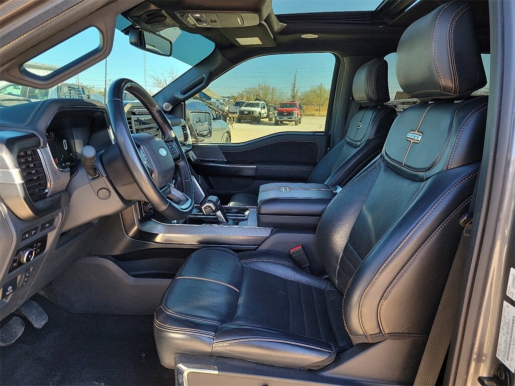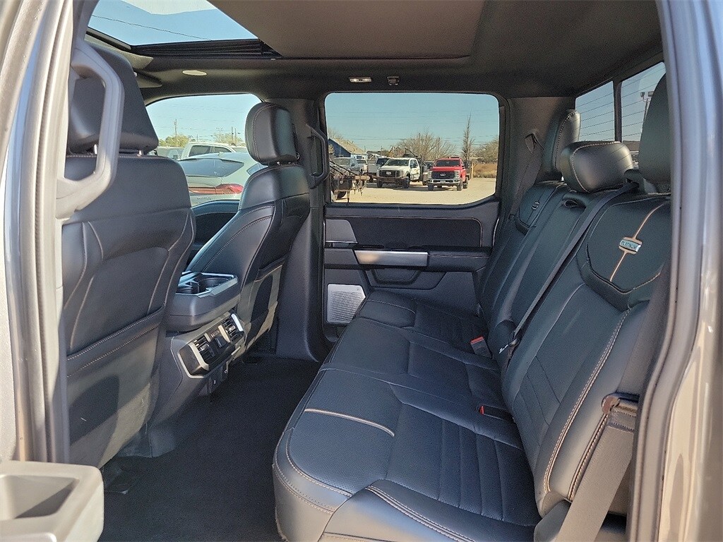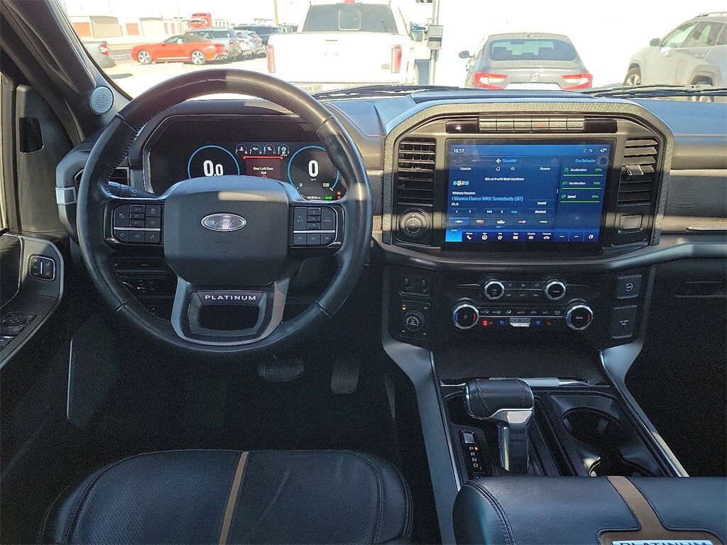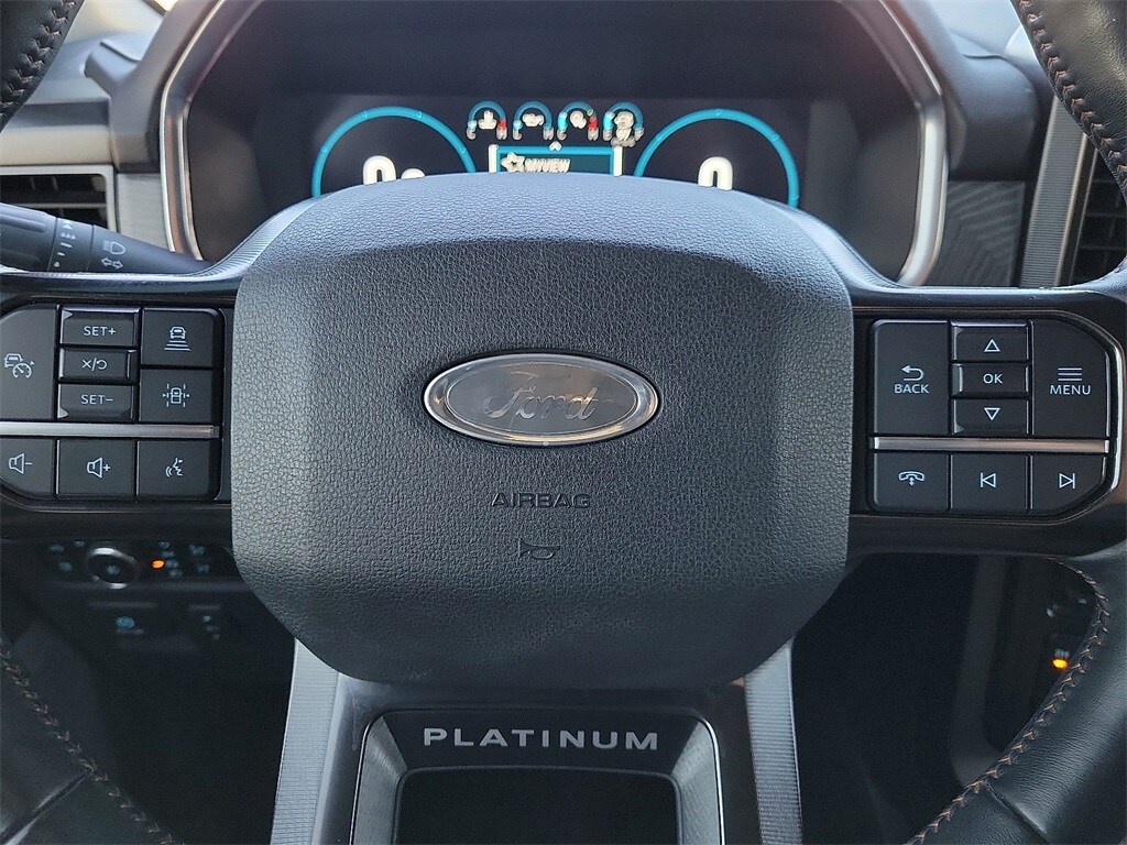 Carbonized Gray Metallic 2023 Ford F-150 Platinum 4WD 10-Speed Automatic 3.5L PowerBoost Full-Hybrid V6 3.5L PowerBoost Full-Hybrid V6, 4WD, 20" Polished Aluminum Wheels, 360 Degree Camera, 4x4 FX4 Off-Road Bodyside Decal, Active Park Assist 2.0, Active Park Assist 2.0 Removal, AM/FM radio: SiriusXM with 360L, Auto High-beam Headlights, Automatic temperature control, Bed Utility Package, BoxLink, Center High-Mounted Stop Lamp CHMSL Camera Removal, Class IV Trailer Hitch Receiver, Electronic Locking w/3.31 Axle Ratio, Emergency communication system: SYNC 4 911 Assist, Equipment Group 701A High, Exterior Parking Camera Rear, Ford BlueCruise 1.0, Front Bucket Seats, FX4 Off-Road Package, Heated front seats, Hill Descent Control, Integrated Trailer Brake Controller, LED Box Lighting, Monotube Rear Shocks, Multicontour Seats w/Active Motion Removal, Off-Road Tuned Front Shock Absorbers, Power Tailgate, Pro Power Onboard - 7.2KW, Pro Trailer Backup Assist & Pro Trailer Hitch Assist, Radio: B&O Unleashed Sound System by Bang & Olufsen, Remote keyless entry, Rock Crawl Mode, Steering wheel memory, Steering wheel mounted audio controls, SYNC 4 w/Enhanced Voice Recognition, Tailgate Step w/Tailgate Work Surface, Trailer Tow Package, Tray Style Floor Liner, Twin Panel Moonroof, Unique Multi-Contour Leather Bucket Seats, Ventilated front seats.