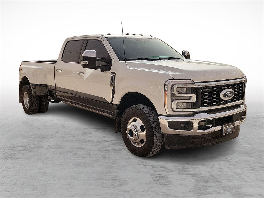 4WD, 17 Forged Polished Aluminum Wheels, Alloy wheels, AM/FM radio: SiriusXM with 360L, Auto High-beam Headlights, Chrome Door Handles, Chrome Exhaust Tip, Chrome Package, Dual rear wheels, Emergency communication system: SYNC 4 911 Assist, Exterior Parking Camera Rear, Flow-Through Console, Front Bucket Seats, Front Center Armrest, FX4 Off-Road Package, GVWR: 14,000 lb Payload Package, Heated front seats, Heated rear seats, Hill Descent Control, Limited Slip w/3.55 Axle Ratio, Navigation system: Connected Navigation, Off-Road Specifically Tuned Shock Absorbers, Order Code 720A, Panic alarm, Passenger door bin, Power passenger seat, Radio: B&O Unleashed Sound System by Bang & Olufsen, Rain sensing wipers, Rapid-Heat Supplemental Cab Heater, Security system, SiriusXM Radio w/360L, Split folding rear seat, SYNC 4 w/Enhanced Voice Recognition, Twin Panel Power Moonroof, Unique Chrome Mirror Caps, Unique FX4 Off-Road Box Decal, Unique King Ranch Leather 40/Console/40 Seats, Variably intermittent wipers, Ventilated front seats. 2023 Ford F-350SD King Ranch DRW King Ranch 2023 10-Speed Automatic DRW Recent Arrival! F-350SD Ford Power Stroke 6.7L V8 DI 32V OHV Turbodiesel Premier Chrysler Dodge Jeep RAM of Lamesa is dedicated to providing a wide range of new and used models for our customers in Lamesa, Brownfield, Big Spring, and Midland. We want to help you get into the truck, SUV, or car you need at a price you can afford. 4WD Star White Metallic Tri-Coat CARFAX One-Owner. 4D Crew Cab Another feature that makes Premier Chrysler Dodge Jeep RAM of Lamesa stand out is that we give back to our local community. We get involved with charity events and organize special events of our own to help those who live and work in our community. We consider ourselves more than just a business. Were a family that cares about others who are part of our community.