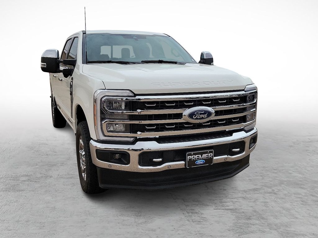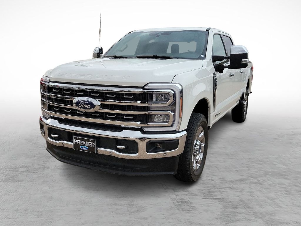 Our Diesel powered One Owner and Clean Carfax 2024 Ford F-250 King Ranch Crew Cab 4X4 with the Chrome and FX4 Off-Road Packs earns its crown with stellar features and stylish Star White Metallic Tri-Coat good looks! Motivated by a TurboCharged 6.7 Liter PowerStroke Diesel V8 serving up 475hp and 1050lb-ft of torque to a 10 Speed Automatic transmission. This fantastic Four Wheel Drive truck also impresses with incredible functionality, as shown by a Pro Power Onboard generator and built-in scales for payload/trailer-tongue weights. Our F-250 turns heads with our Chrome Pack, adding aggressive 20-inch chrome PVD wheels, bright step bars, chrome bumpers, and plenty of matching accents to LED lighting and a power tailgate. Exclusive luxury awaits in our King Ranch cabin, which has heated/ventilated Kingsville leather power front and heated rear seats, a heated Kingsville leather power steering wheel, dual-zone automatic climate control, power-adjustable pedals, 120V/400W outlets, and a powered rear window. Digital highlights include B&O Unleashed audio a 12-inch touchscreen, a 12-inch driver display, connected navigation, wireless charging, WiFi compatibility, Apple CarPlayÃ/Android AutoÃ, BluetoothÃ, and voice control. Ford supports safety with front/rear automatic braking, a head-up display, a 360-degree camera system, trailer blind-spot monitoring, lane-keeping assistance, intersection assistance, parking sensors, and more. Ready for a workout, our F-250 King Ranch is a better way to go! Save this Page and Call for Availability. We Know You Will Enjoy Your Test Drive Towards Ownership!