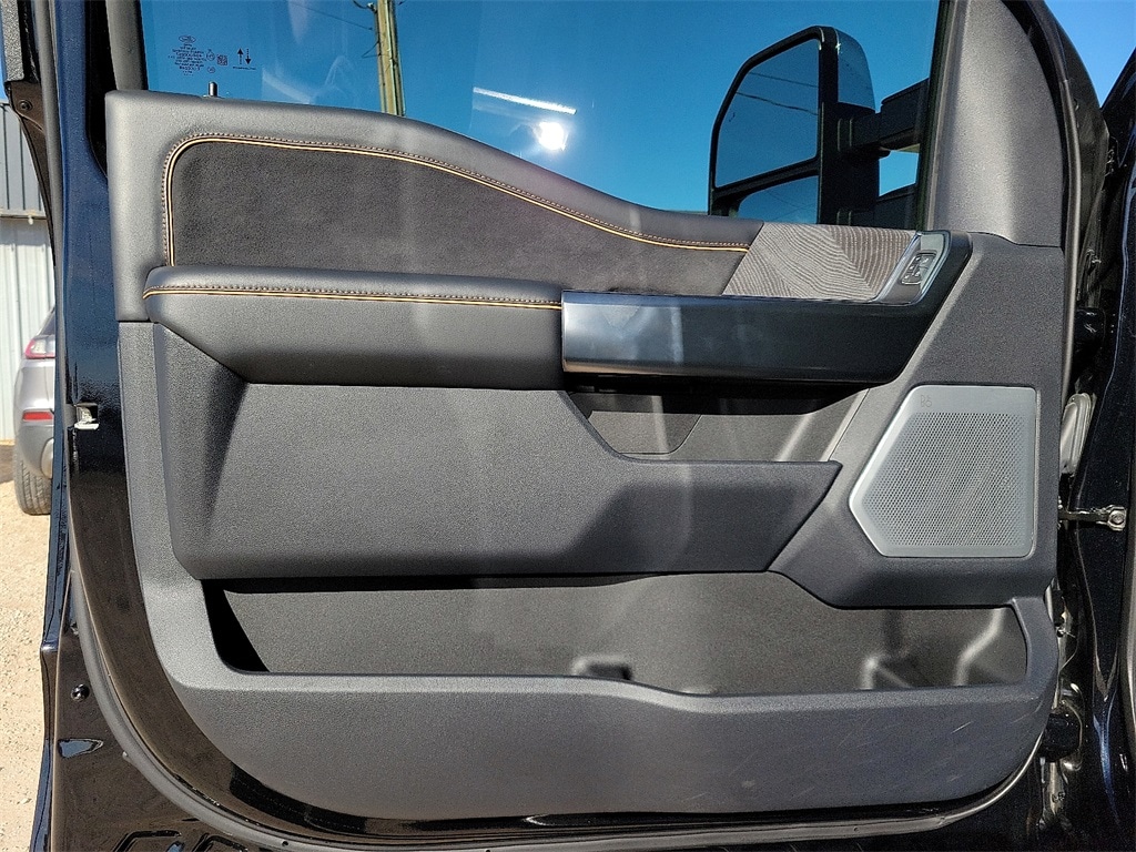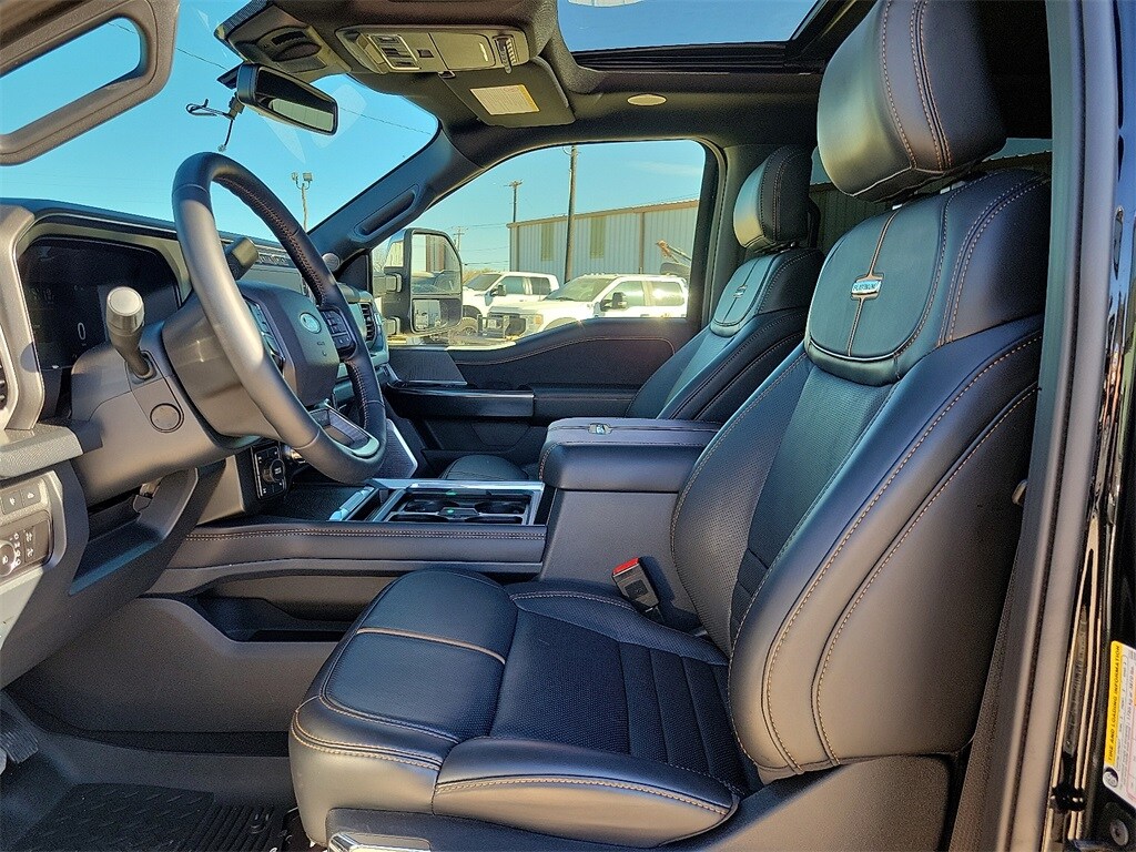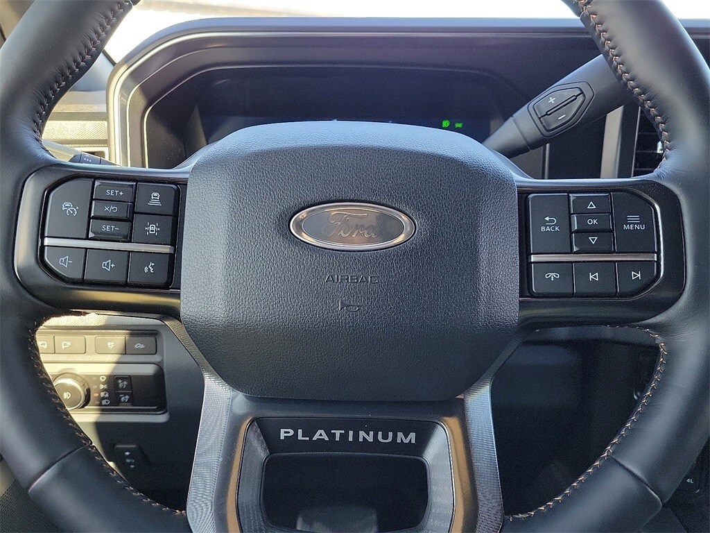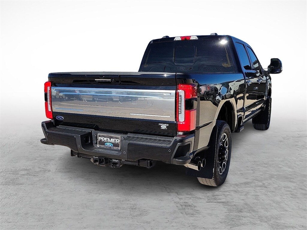 Our Diesel driven One Owner and Clean carfax 2024 Ford F-350 Platinum Crew Cab 4X4 with the FX4 Off-Road and 5th Wheel Hitch Prep Packs combines raw power and refined luxury in Agate Black Metallic! Motivated by a TurboCharged 6.7 Liter High Output PowerStroke Diesel V8 delivering 500hp and 1200lb-ft of torque to a 10 Speed Automatic transmission. This Four Wheel Drive truck goes from tow master to trail rider with our FX4 Pack, which adds hill-descent control, off-road shocks, robust skid plates, and an FX4 box decal. A mighty grille helps you make an even bolder impression with Ford F-350 details like LED lighting, power running boards, a power tailgate, a sunroof, a Pro Power Onboard generator, and alloy wheels.