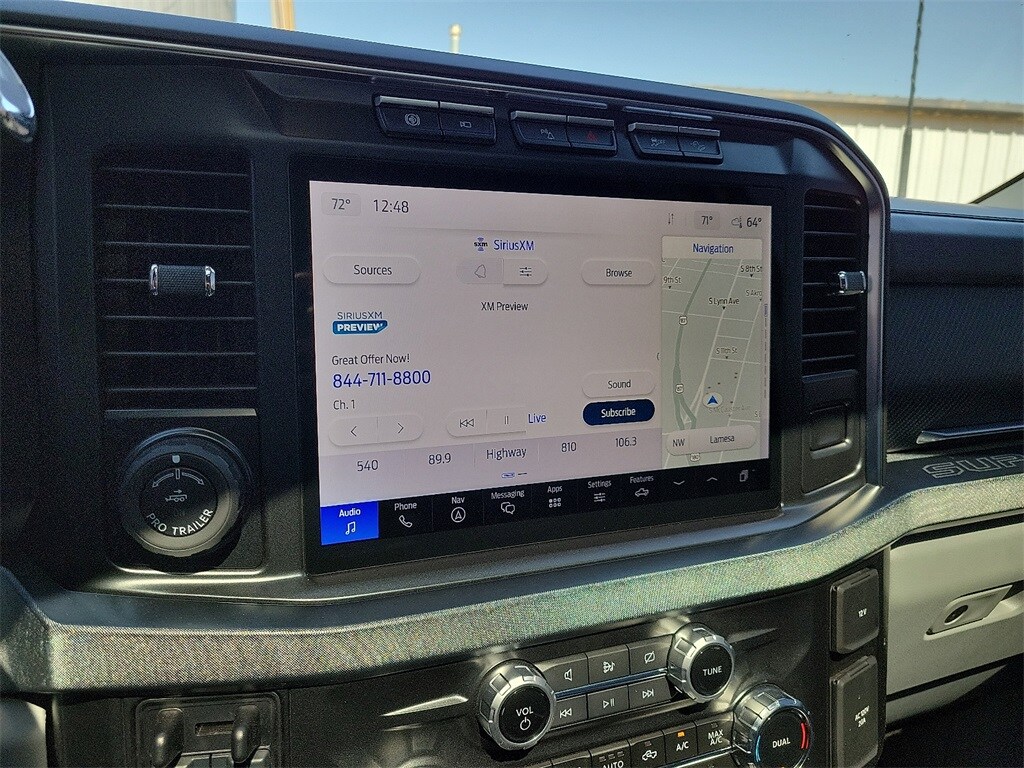 4WD, 17" Forged Polished Aluminum Wheels, Alloy wheels, AM/FM radio: SiriusXM with 360L, Auto High-beam Headlights, BLIS w/Cross-Traffic Alert, Dual rear wheels, Electronic Stability Control, Emergency communication system: SYNC 4 911 Assist, Engine Block Heater, Exterior Parking Camera Rear, Flow-Through Console, Front Bucket Seats, Front Splash Guards/Mud Flaps (Pre-Installed), FX4 Off-Road Package, GVWR: 14,000 lb Payload Package, Heated front seats, Heated rear seats, Hill Descent Control, Intelligent Adaptive Cruise Control w/Stop-and-Go, Limited Slip w/3.55 Axle Ratio, Navigation system: Connected Navigation (includes complimentary 1-year trial), Off-Road Specifically Tuned Shock Absorbers, Order Code 728A, Panic alarm, Power-Deployable Running Boards, Radio: B&O Unleashed Sound System by Bang & Olufsen, Security system, SiriusXM Radio w/360L, Speed control, SYNC 4 w/Enhanced Voice Recognition, Twin Panel Power Moonroof, Unique FX4 Off-Road Box Decal, Unique Limited 2-Tone Leather 40/Console/40 Seats, Ventilated front seats.