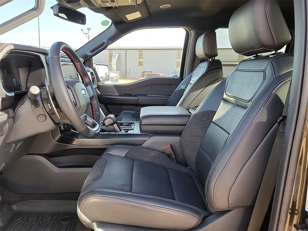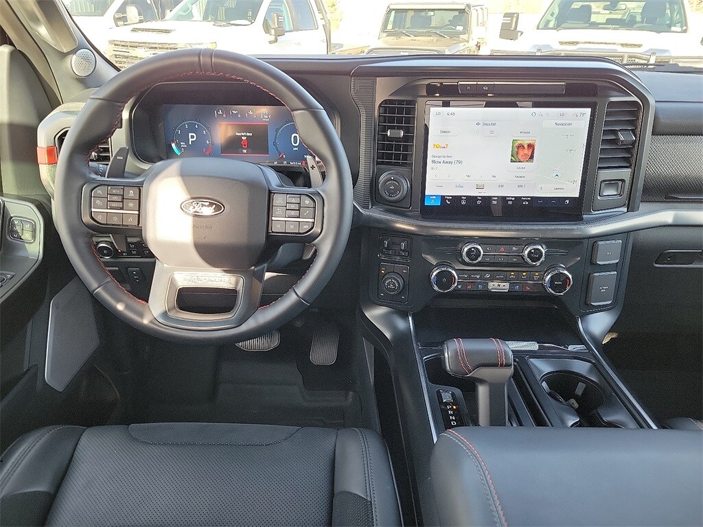 Heated and ventilated leather power front seats, a heated leather steering wheel, dual-zone automatic climate control, and power-adjustable pedals add a touch of comfortable class to our Raptor cabin. Commanding technology awaits with a SYNC-powered infotainment system bundling a 12-inch touchscreen, a 12-inch productivity screen, B&O Unleashed audio, connected navigation compatibility, Apple CarPlay®, Android Auto®, Bluetooth®, and WiFi compatibility.