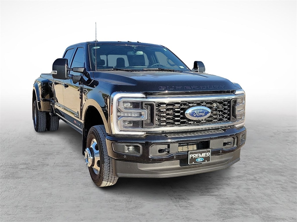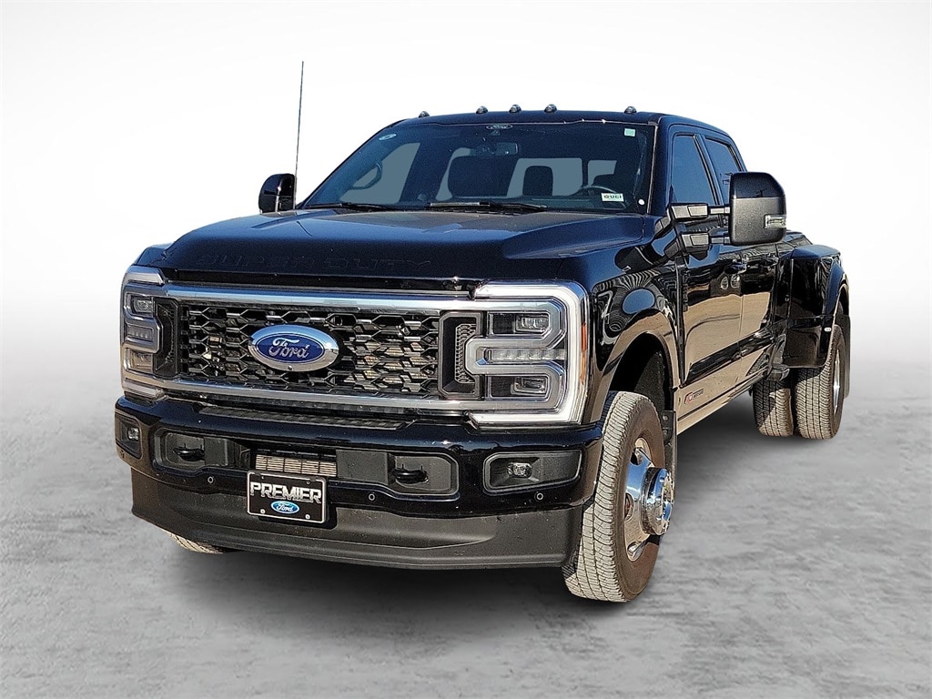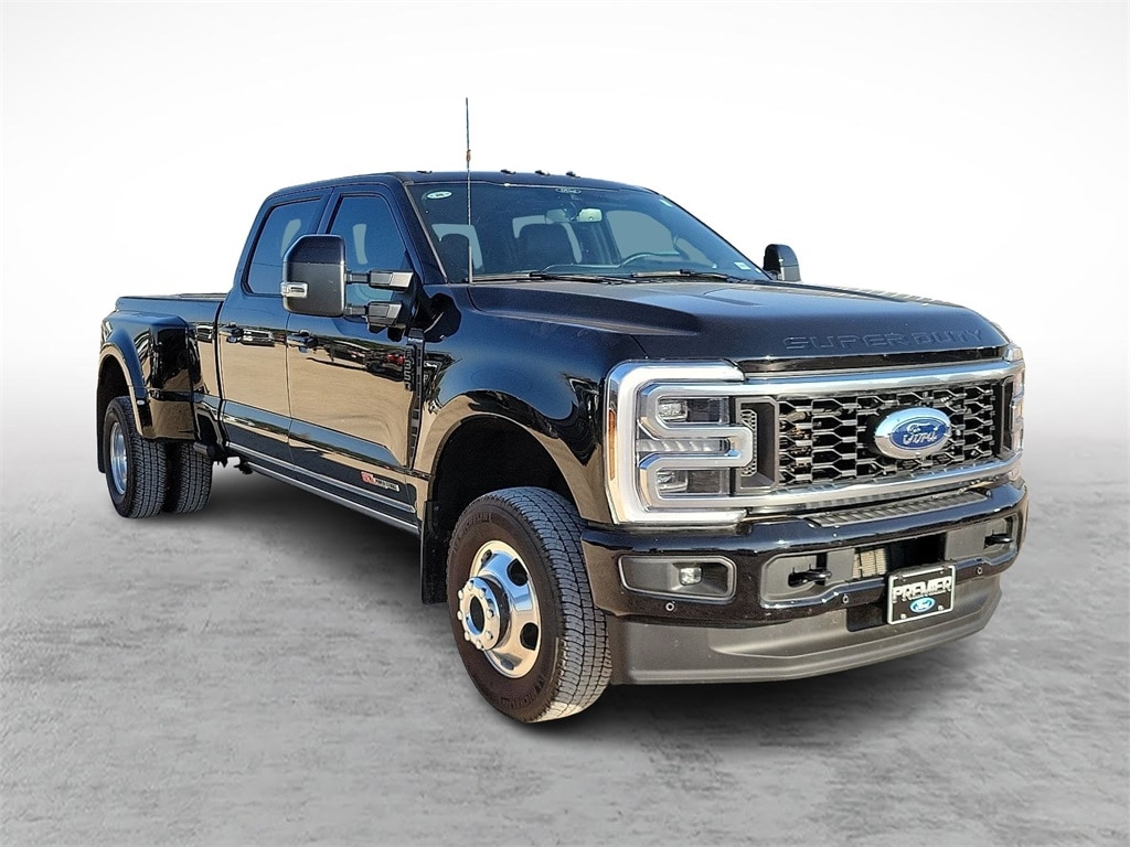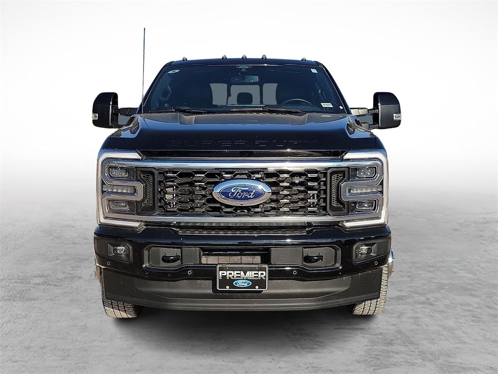 Our diesel-driven One Owner and Clean Carfax 2025 Ford F-350 Platinum Crew Cab 4X4 Dually combines raw power and refined luxury in Agate Black Metallic! Motivated by a TurboCharged 6.7 Liter High Output PowerStroke Diesel V8 delivering 500hp and 1200lb-ft of torque to a 10 Speed Automatic transmission. That lets our Four Wheel Drive truck tow, haul, and take on your world without sweating. A mighty grille helps you make a bold impression with Ford F-350 details like LED lighting, fog lamps, power running boards, a power tailgate, a Pro Power Onboard generator, a twin-panel sunroof, and striking alloy wheels.