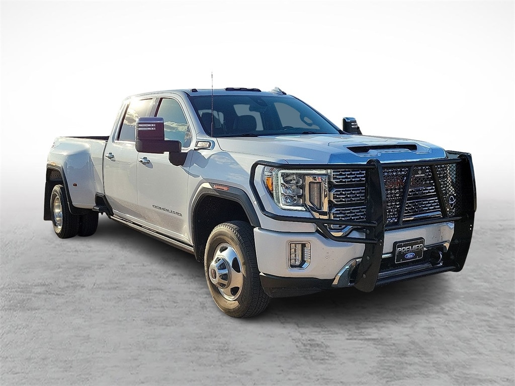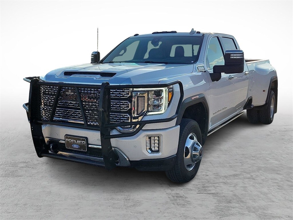 Our Diesel powered Clean Carfax 2022 GMC Sierra 3500HD Denali Crew Cab Long Box Dually 4X4 promises incredible command and control in White Frost Tricoat! Motivated by a TurboCharged 6.6 Liter DuraMax Diesel V8 offering 445hp and 910lb-ft of torque to a 10 Speed Allison Automatic transmission. This Four Wheel Drive truck dominates the daily grind with digital variable steering, an autolocking rear differential, and a ProGrade trailering system. As stylish as it is capable, our Sierra is at your service with an exclusive Denali grille, LED lighting, robust skid plates, chrome assist steps, a sunroof, a spray-on bedliner, a grille guard, and a six-function MultiPro tailgate.