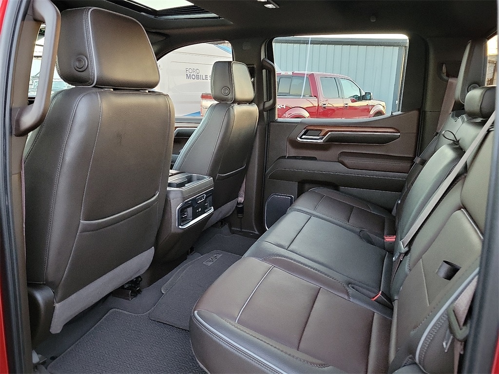Volcanic Red Tintcoat 2023 GMC Sierra 1500 Denali 4WD 10-Speed Automatic 3.0L I6 10-Speed Automatic, 4WD, Atmosphere/Brownstone Leather, 120-Volt Instrument Panel Power Outlet, 170 Amp Alternator, 2 Charge/Data USB Ports Inside Center Console, 2 Type-C Charge-Only Rear USB Ports, 2 USB Ports, Alloy wheels, Apple CarPlay/Android Auto, Auto-Locking Rear Differential, Auxiliary External Transmission Oil Cooler, Bed View Camera, Cargo Convenience Package, Chrome Header w/Signature Denali Chrome Grille, Chrome Recovery Hooks, Chrome Wheel To Wheel Assist Steps, Color-Keyed Carpeting Floor Covering, Compass, Console-Mounted Safe (LPO), Deep-Tinted Glass, Denali Reserve Package, Electric Rear-Window Defogger, Electrical Steering Column Lock, Floor-Mounted Center Console, Front Rainsensing Wipers, GMC Connected Access Capable, GMC MultiPro Power Steps, HD Surround Vision, Heated 2nd Row Outboard Seats, Heated Driver & Front Outboard Passenger Seating, Heavy-Duty Air Filter, Hill Descent Control, Hitch Guidance w/Hitch View, In-Vehicle Trailering App, Integrated Trailer Brake Controller, Keyless Open & Start, LED Cargo Area Lighting, Multicolor 15" Diagonal Head-Up Display, Navigation System, OnStar & GMC Connected Services Capable, Perimeter Lighting, Power Door Locks, Power Front Passenger Windows w/Express Up/Down, Power Front Windows w/Driver Express Up/Down, Power Rake & Telescoping Steering Column, Power Rear Windows w/Express Down, Power Sliding Rear Window w/Rear Defogger, Power Sunroof, Preferred Equipment Group 5SA, Premium Bose 7-Speaker Sound System, Push Button Start, Radio: Premium GMC Infotainment Audio System, Rear Cross Traffic Braking, Rear Pedestrian Detection, Rear Underseat Storage (LPO), Rear Wheelhouse Liners, Remote Vehicle Starter System, SiriusXM w/360L, Spray-On Pickup Bed Liner w/Denali Logo, Steering Wheel Audio Controls, Technology Package, Theft Deterrent System (Unauthorized Entry), Trailer Camera Provisions, Trailer Side Blind Zone Alert, Trailering Package, Ultrasonic Front & Rear Park Assist, Universal Home Remote, Ventilated Driver & Front Passenger Seats, Wheel Locks (Set of 4) (LPO), Wheels: 22" x 9" Painted Aluminum, Wi-Fi Hotspot Capable, Wireless Charging, Wireless Phone Projection.