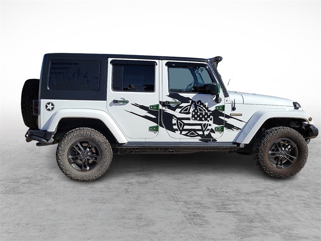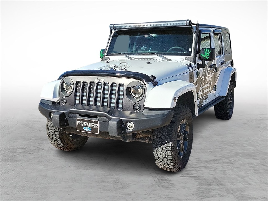 Priced below KBB Fair Purchase Price! Bright White Clearcoat 2018 Jeep Wrangler JK Unlimited Willys Wheeler 4WD 5-Speed Automatic 3.6L V6 24V VVT 115V Auxiliary Power Outlet, 3.21 Rear Axle Ratio, ABS brakes, Audio Jack Input for Mobile Devices, BF Goodrich Brand Tires, Black Jeep Grille Badge, Black/Chrome Screws Fuel Filler Door, Body Color Fender Flares, Cloth Seats w/Adjustable Head Restraints, Compass, Connectivity Group, Dana 44/226MM Rear Axle, Deep Tint Sunscreen Windows, Driver Height Adjuster Seat, Electronic Stability Control, Freedom Edition Package, Freedom Package Decals, Front Bucket Seats, Front Center Armrest w/Storage, Heavy Duty Suspension w/Gas Shocks, Iron Gray Interior Accents, Jeep Trail Rated Kit, Leather Seat w/Cloth (Sedoso Fabric), Low tire pressure warning, Mid Gloss Granite Crystal Grille, MOPAR Black Tail Lamp Guards, MOPAR Grab Handles, MOPAR HD Rear Bumper, MOPAR Slush Mats, MOPAR Winch-Capable HD Front Bumper, Oscar Mike Badge, Pantone Trail Rated Badge, Passenger door bin, Power Convenience Group, Premium Black Sunrider Soft Top, Quick Order Package 24F Freedom Edition, Silver Interior Accents, Split folding rear seat, Traction control, Wheels: 17" x 7.5" Low Gloss Granite Crystal.