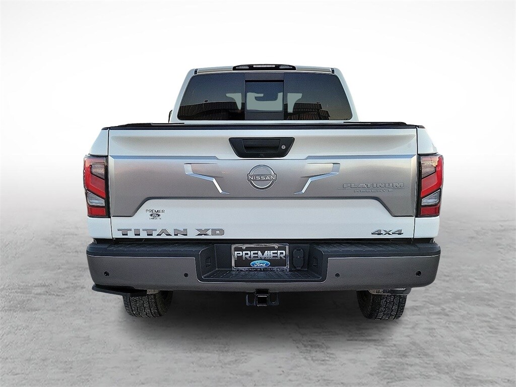 Priced below KBB Fair Purchase Price! Pearl White 2023 Nissan Titan XD Platinum Reserve 4WD 9-Speed Automatic 5.6L V8 DOHC 32V Federal 400hp 4.083 Axle Ratio, Alloy wheels, AM/FM radio: SiriusXM, Auto High-beam Headlights, Automatic temperature control, Blind Spot Warning, Emergency communication system: NissanConnect Services, Heated & Cooled Captain's Seats, Heated front seats, Heated rear seats, Navigation system: NissanConnect Navigation, NissanConnect Services Powered By SiriusXM, Off Road Protection Package (K93), Passenger door bin, Premium Leather Seat Trim, Radio data system, Radio: NissanConnect w/Navigation, Rain sensing wipers, Special Paint - Pearl White/Cardinal Red Metallic, Speed-sensing steering, Speed-Sensitive Wipers, Steering wheel mounted audio controls, Traction control, Turn signal indicator mirrors, Variably intermittent wipers, Ventilated front seats, Wheels: 20 x 7.5 Dark Painted & Machined Clad. At Premier Ford in Lamesa, we understand that customers have many options when they are ready to buy a new Ford car, truck, van, or SUV. And we want to show every customer our appreciation for them visiting our dealership and choosing to make their purchase from us. Recent Arrival! Odometer is 7946 miles below market average! As a full-service Ford Dealership, we are very proud to offer our customers everything they will ever need during their vehicle ownership experience. From the start of our relationship, when you are shopping for a new car until the day you are ready to trade the vehicle in or buy another vehicle, we are here to meet your needs. Phone: 806-872-2188 https://www.premierfordoflamesa.com/