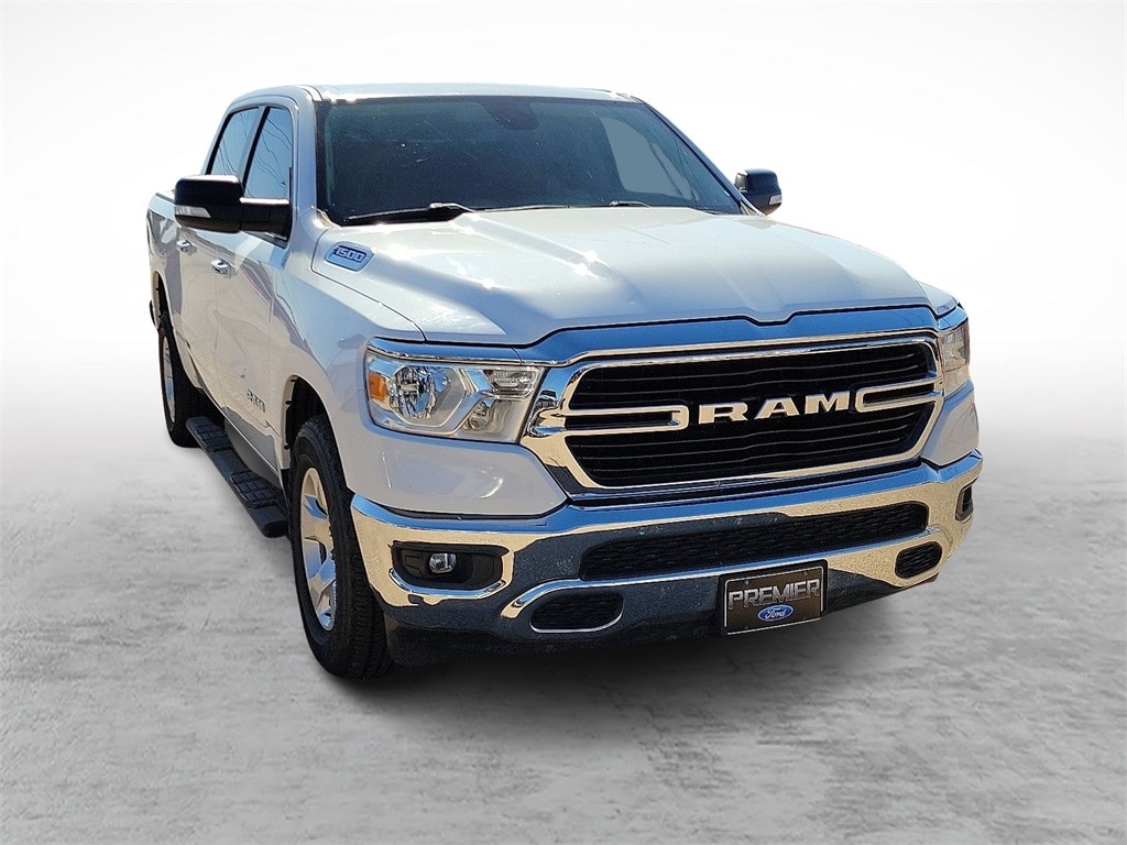 Our One Owner and Clean Carfax 2020 RAM 1500 Big Horn Crew Cab 4X2 in Bright White with the Level 1 Equipment Package is a rugged workhorse that's ready to ride to almost any adventure! Motivated by a 5.7 Liter HEMI V8 offering 395hp paired with an 8 Speed Automatic transmission for optimal performance and towing capability. This Rear Wheel Drive truck also has a composed ride and takes you further down the road with confidence as you score nearly 25mpg on the highway. Check out our Big Horn and notice the fog lamps, power heated mirrors, distinctive grille, chrome accents, 18-inch alloy wheels, Class IV hitch, and locking tailgate. You'll make a big impression with features like those!
