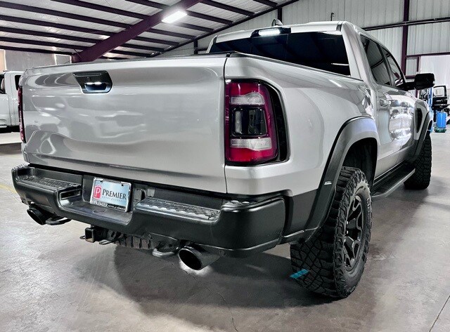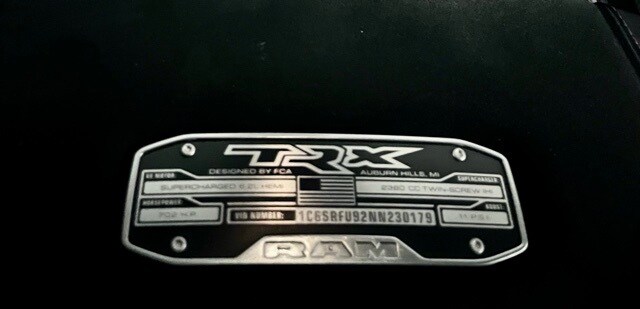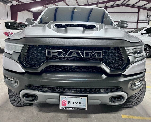 97 Point Inspection, 1500 TRX LEVEL 2, 4D Crew Cab, 6.2L Supercharged HEMI V8 SRT, 8-Speed Automatic, 4WD, Billet Silver Metallic Clearcoat, Black Leather, 2-Door Passive Entry, Front Door Locks, Adaptive Cruise Control w/Stop & Go, Advanced Safety Group, Bed Utility Group, Blind Spot & Cross Path Detection, Body Color Door Handles, Digital Rearview Mirror, Driver Seat Memory, Driver/Passenger Wrapped Assist Handles, Exterior Mirrors w/Memory, Front Door Accent Lighting, Full Length Premium Upgraded Floor Console, harman/kardon 19 Speaker Premium Sound, Heads-Up Display, Heated Second Row Seats, Heated Steering Wheel, IP LED Ambient Light Pipe, Lane Keep Assist, Leather Trimmed Bucket Seats, Leather/Carbon Flat-Bottom Steering Wheel, Leather/Suede Flat-Bottom Steering Wheel, LED CHMSL Lamp, Luxury Front Door Trim Panel, MOPAR 4 Adjustable Cargo Tie-Down Hooks, MOPAR Bright Pedal Kit, MOPAR Deployable Bed Step, MOPAR Spray In Bedliner, MOPAR TRX Hood Graphics, ParkSense Front/Rear Park Assist w/Stop, Pedestrian Emergency Braking, Pick-Up Box Lighting, Power 8-Way Driver & Passenger Seats, Power Adjustable Pedals w/Memory, Premium Wrapped IP Bezel, Radio/Driver Seat/Mirrors/Pedals Memory, Rain Sensitive Windshield Wipers, Real Carbon Fiber Interior Accents, Rear 60/40 Folding Split Recline Seat, Rear Door Accent Lighting, Rear Underseat Compartment Storage, Rear Window Defroster, Remote Tailgate Release, Sun Visors w/Illuminated Vanity Mirrors, Surround View Camera System, Tailgate Ajar Warning Lamp, Trailer Brake Control, TRX Carbon Fiber Package, TRX Level 2 Equipment Group, TRX Red Interior Accents, Universal Garage Door Opener, Ventilated Front Seats, Ventilated Rear Seats, Wireless Charging Pad.
