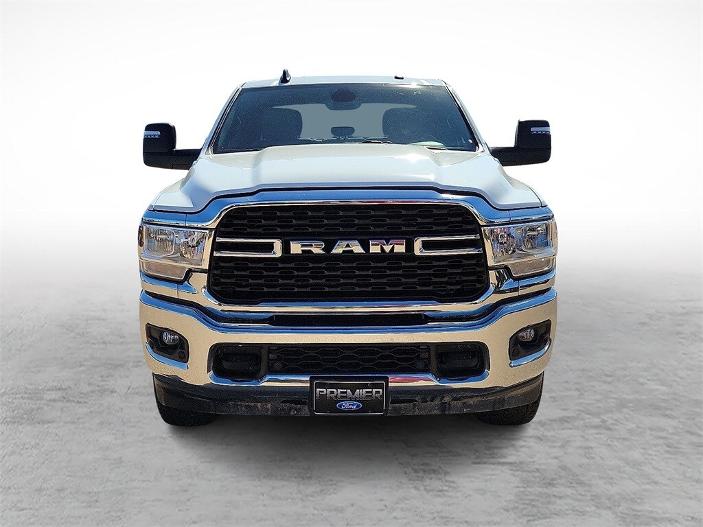 Our Diesel powered One Owner and Clean Carfax 2024 RAM 2500 Big Horn Crew Cab 4X4 with the Level 1 Equipment Pack in Bright White is engineered to make quick work out of your challenging tasks! Motivated by a TurboCharged 6.7 Liter Cummins Diesel 6 Cylinder providing 370hp and 850lb-ft of torque to a 6 Speed Automatic transmission for terrific towing and hauling capability. A heavy-duty suspension is standard for a confident ride, and our Four Wheel Drive truck has no-nonsense good looks with eye-catching details. This mighty machine is ready to rule the road with our Level 1 Pack, which adds fog lamps, multifunction mirrors, and alloy wheels to chrome accents, bright bumpers, running boards, a bed liner, a Class V receiver hitch, and a mighty RAM grille.
