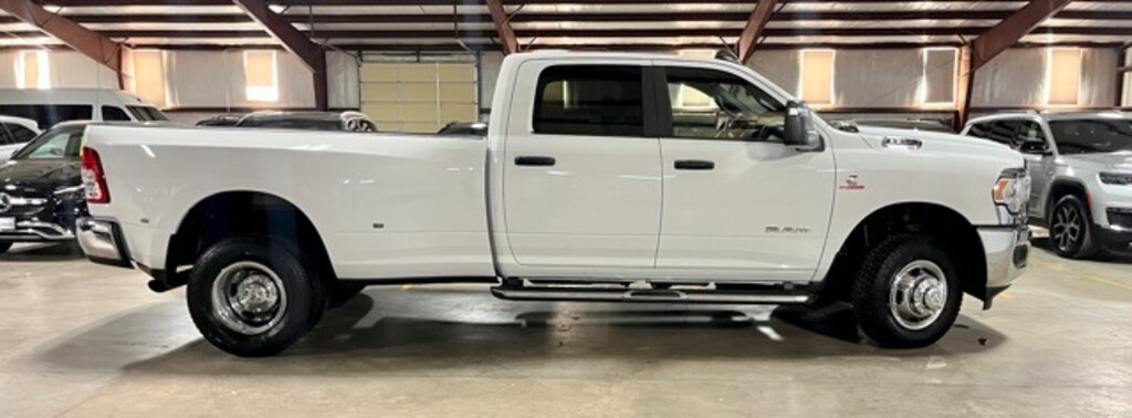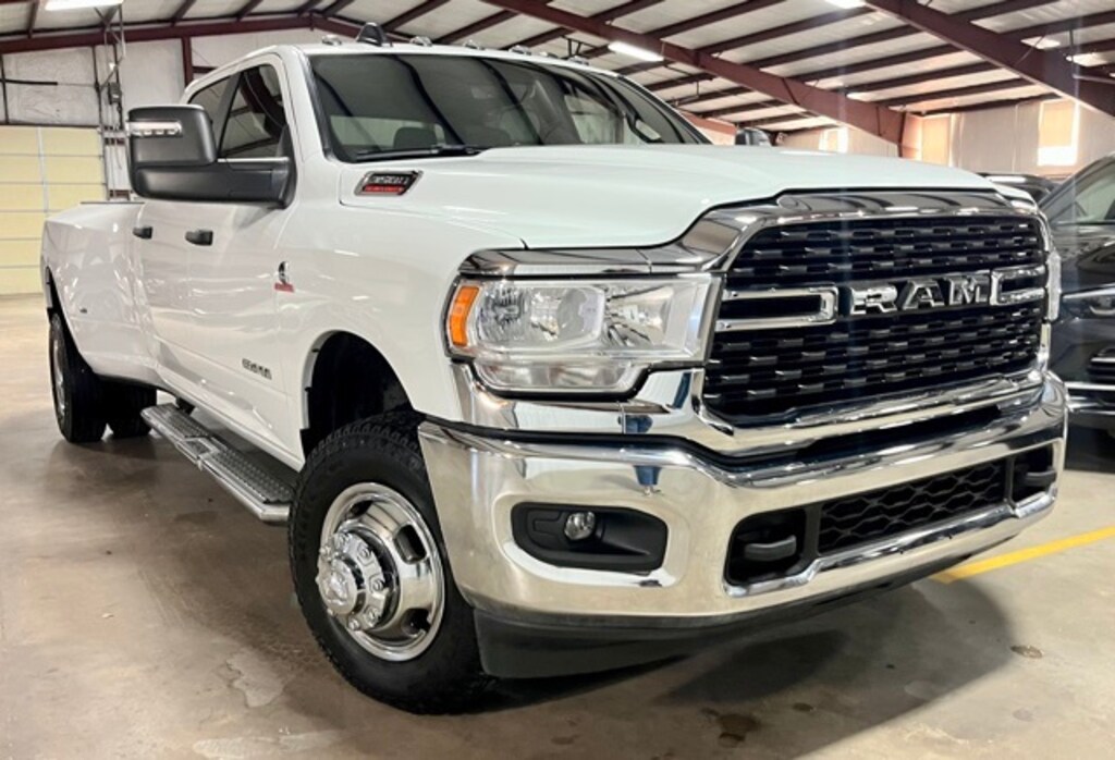 97 Point Inspection, 3500 Big Horn, 4D Crew Cab, Cummins 6.7L I6 Turbodiesel, 6-Speed Automatic, 4WD, Bright White Clearcoat, Diesel Gray/Black Cloth, 2nd Row In Floor Storage Bins, 5th Wheel/Gooseneck Towing Prep Group, Auto Power-Folding Mirrors, Black Exterior Mirrors, Center Hub, Chrome Flat Cab-Length Side Steps, Dual Glove Boxes, Exterior Mirrors Courtesy Lamps, Exterior Mirrors w/Heating Element, Exterior Mirrors w/Supplemental Signals, Foam Bottle Insert (Door Trim Panel), Footwell Courtesy Lamp, Forward & Reverse Utility Lights, Front Fog Lamps, Glove Box Lamp, Leather Wrapped Steering Wheel, Level 1 Equipment Group, Locking Lower Glove Box, Mirror Running Lights, Power Adjust Mirrors, Power Heated Fold Telescopic Mirrors, Power Telescoping Mirrors, Power-Adjustable Convex Aux Mirrors, Premium Cloth 40/20/40 Bench Seat, Radio: Uconnect 5 w/8.4" Display, Rear Dome w/On/Off Switch Lamp, Steering Wheel Mounted Audio Controls, Wheels: 18" x 8.0" Polished Aluminum.