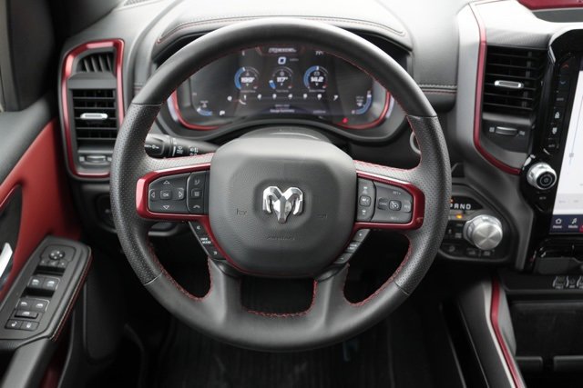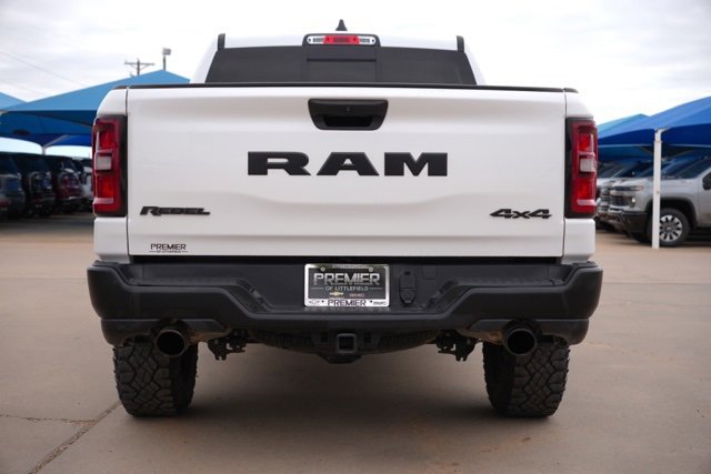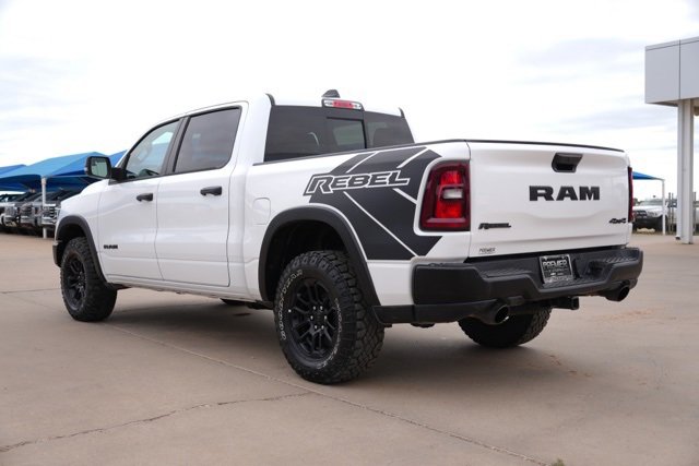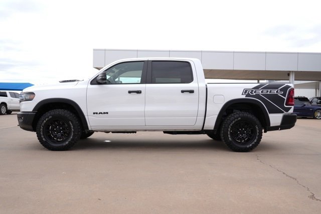 2025 Ram 1500 Bright White Clearcoat Rebel 1500 Rebel, 10 Speakers, 4G LTE Wi-Fi Hot Spot, AM/FM radio: SiriusXM with 360L, Apple CarPlay/Android Auto, Auto Power-Folding Mirrors, Auto-Dimming Exterior Driver Mirror, Black Premium Power Mirrors, Connected Travel & Traffic Services, Convex Wide-Angle Exterior Mirror Insert, Exterior Mirrors Courtesy Lamps, Exterior Mirrors w/Heating Element, Exterior Mirrors w/Supplemental Signals, GPS Antenna Input, Heated steering wheel, ParkView Rear Back-Up Camera, Power Adjustable Pedals, Quick Order Package 21W Rebel, Radio: Uconnect 5 Nav w/12.0 Display, Rear Window Defroster, Rebel Level 1 Equipment Group, Remote Tailgate Release, Wireless Charging Pad. 4WD 8-Speed Automatic 3.0L I6